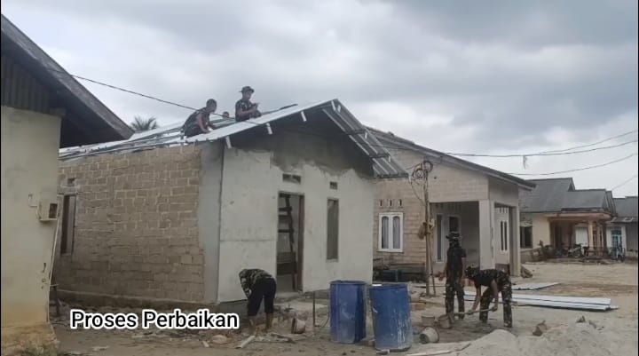 Proses perbaikan rumah Pak Iwan yang dilakukan secara gotongroyong oleh TNI AD Kodim 0432 Bangka Selatan.